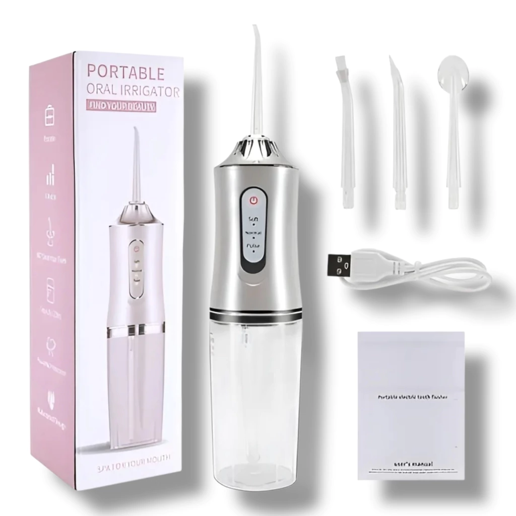 El Irrigador Bucal Portátil llega para limpiar lo que el cepillo y el hilo dental no logran. Con 4 boquillas intercambiables, es la solución más efectiva para mantener tu boca fresca y sana.